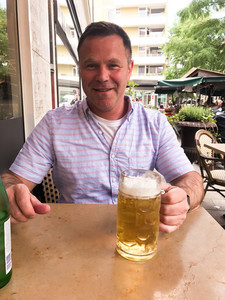 The streets of Munich are so quintessentially Bavarian with the building architecture, design, and Lederhosen... everywhere. We walked around a bit more before settling on a small street-side restaurant for our first beer. And apparently, drinking beer before noon is absolutely acceptable when in Germany. Just look at Ken's big smile!
